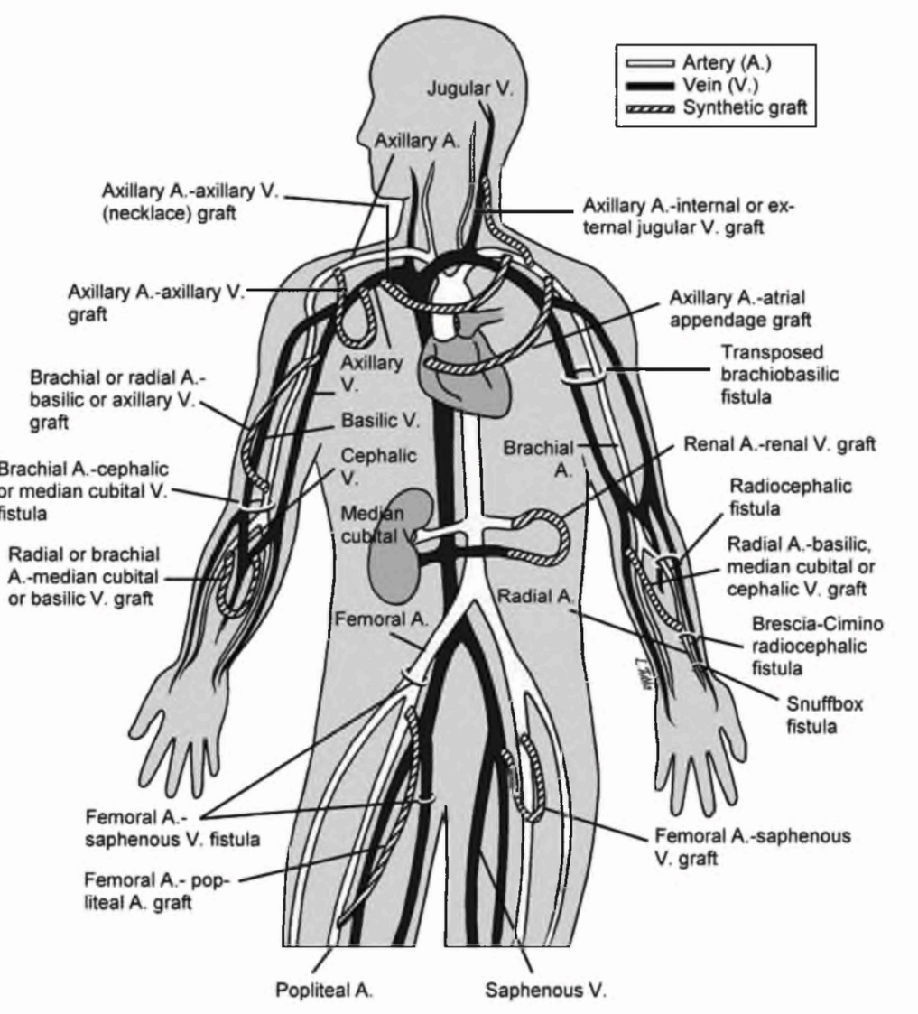 Lok CE, Davidson I. Optimal choice for dialysis access for chronic kidney disease patients: developing a life plan for dialysis access. Semin Nephrol. 2012; 32: 530-537.