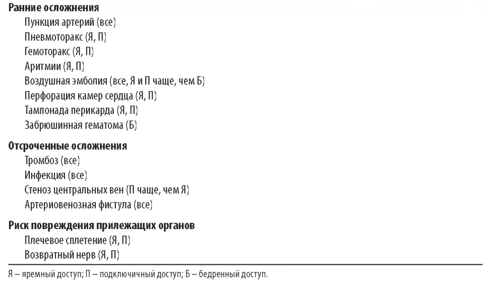 Таблица 7.2 Осложнения катетеризации центральной вены
