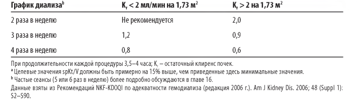 Таблица 11.2 Первоначальное назначение параметров диализа конкретному пациенту для достижения целевого spKt/V