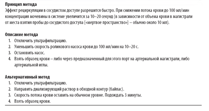 Таблица 11.4 Рекомендации по взятию проб крови для определения постдиализного уровня мочевины крови