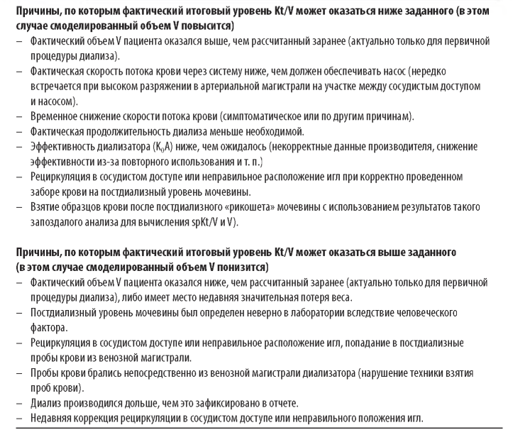 Таблица 11.5 Причины, по которым spKt/V, рассчитанный исходя из величин URR, может отличаться от рекомендуемого уровня Kt/V