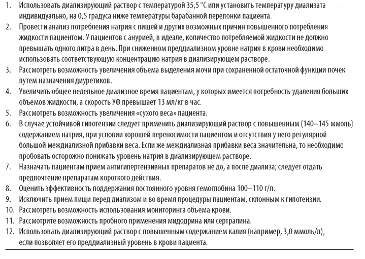 Таблица 12.2 Мероприятия по предотвращению гипотензии во время сеанса диализа